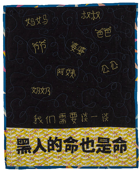 This quilt is inspired by “Letters for Black Lives,” an open letter project on Anti-Blackness. Through crowdsourcing, it creates a script in native languages to bridge the generational gap in immigrant families and have a frank discussion about race.I chose a primarily yellow and black color scheme as a nod to the ‘70s “Yellow Peril Supports Black Power” sentiment. Too often Asian American communities are put in as buffers between Black and white communities. Whether it is the model minority myth, scapegoating for violence, or perpetual foreigner stereotypes, this tactic distracts from white supremacy. I love knowing this rich history of Black and Asian solidarity.